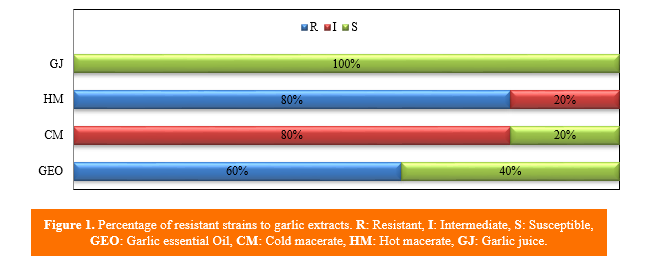 | GJ: Garlic juice, CM: Could macerate, MIC: Minimum inhibitory concentration, MBC: Minimum bactericide concentration, BC: Bactericid. |
