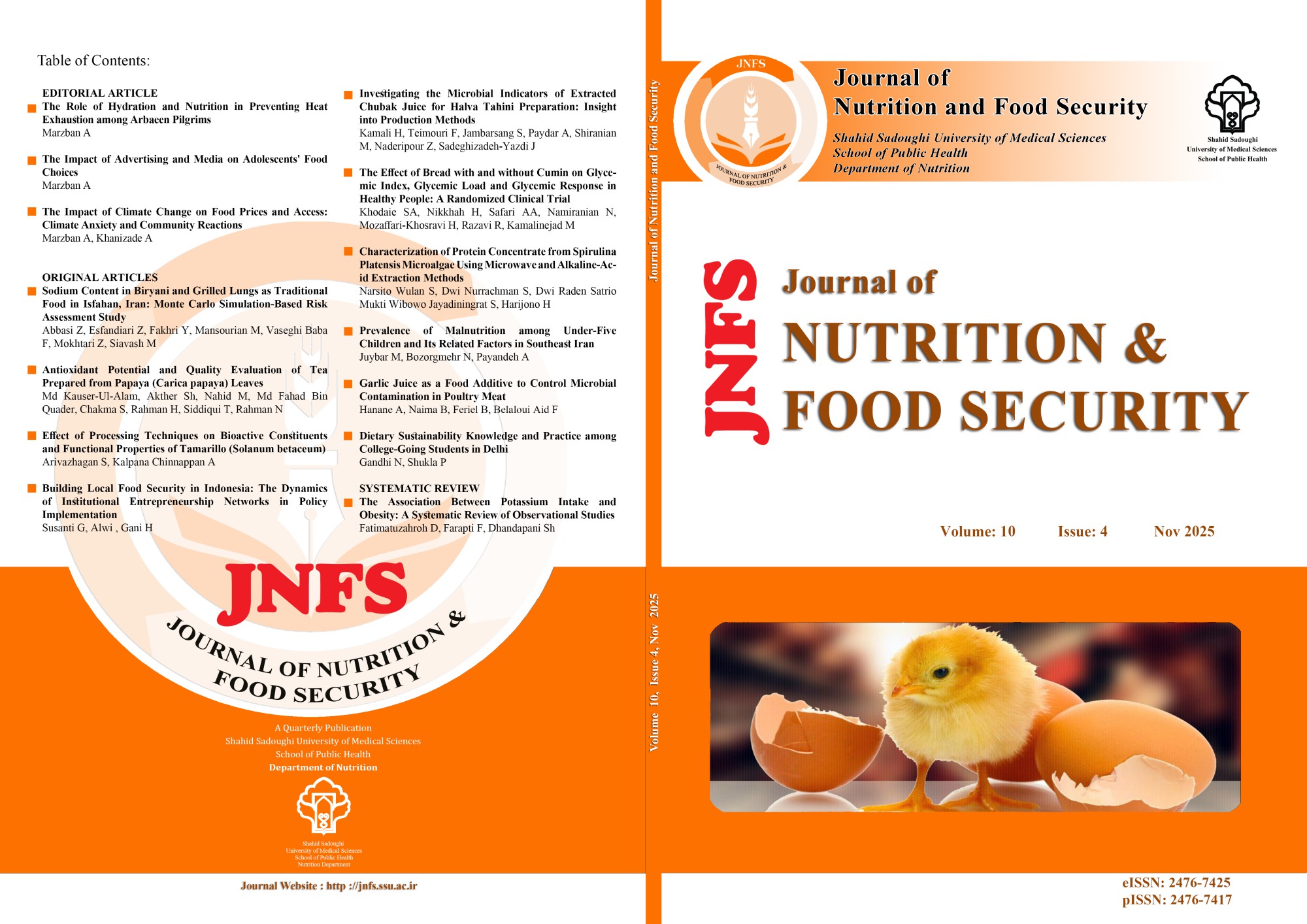Journal of Journal of nutrition and food security is an open-access journal. There are no charges for publication in this Journal